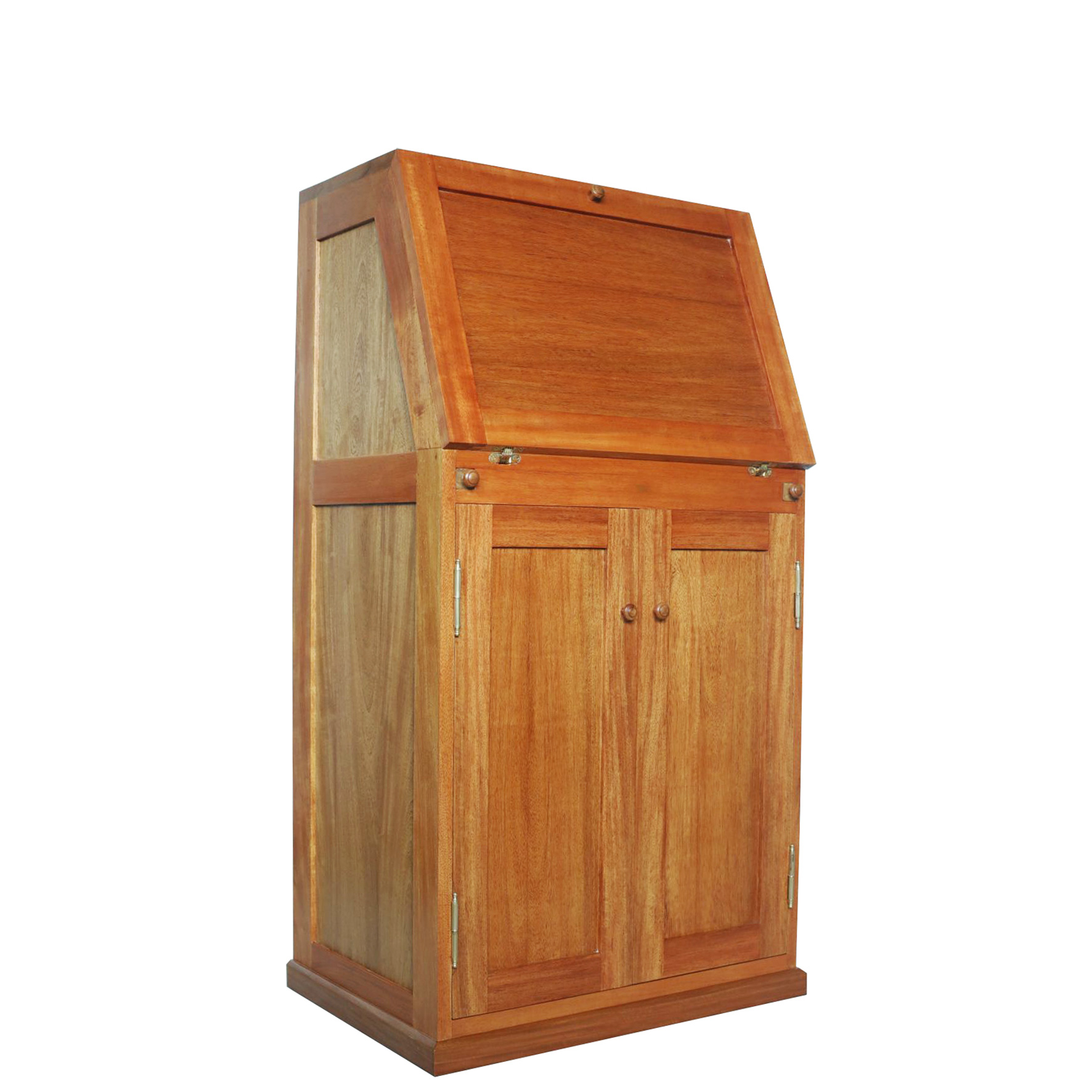 Klassischer Schrägklappen-Sekretär in Form und Funktion neu und zeitgemäß interpretiert. Raumschmuck und praktisches Gebrauchsmöbel in einem.